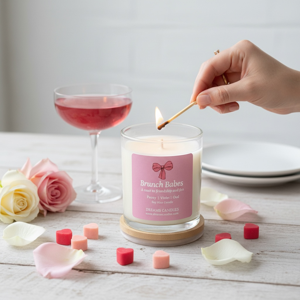 Brunch Babes candle is the scent of friendship and love—a playful, radiant fragrance that celebrates the bonds that make life brighter. It opens with bright, joyful Peony and luminous Jasmine, like sunlit brunch tables, laughter shared over coffee, and the warmth of friends who feel like family. Cozy Cloves add a touch of inviting comfort, while rich Patchouli and smoky Oud give the fragrance a luxurious, incense depth that lingers like inside jokes, hugs, and memories made together.